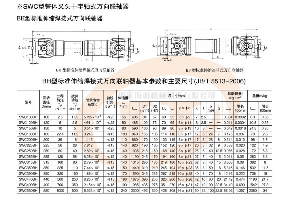 SWC型十字轴式万向联轴器种类型号居多,具体规格型号有: